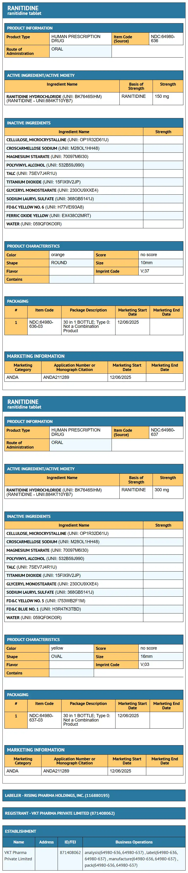 | Ranitidine Tablets, USP 150mg 30CT | 64980063603 | 3074275 |